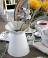 白の陶器を可憐に飾り立てています。