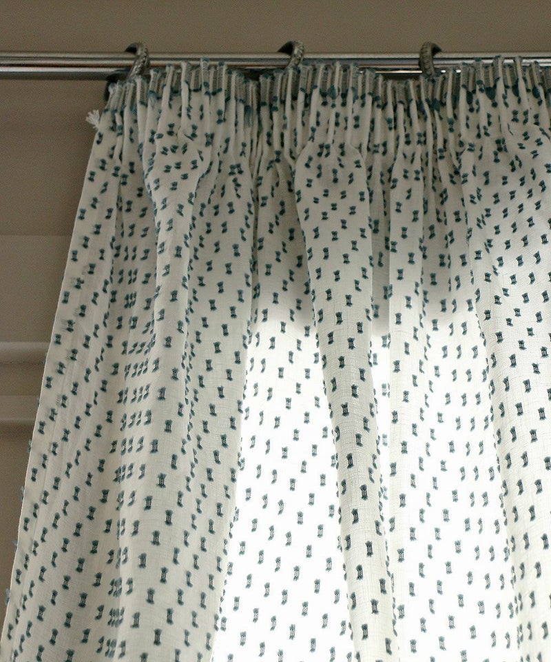 カーテンポールやレールに引っ掛けて頂くカジュアルな仕立てです。