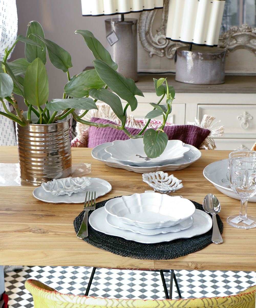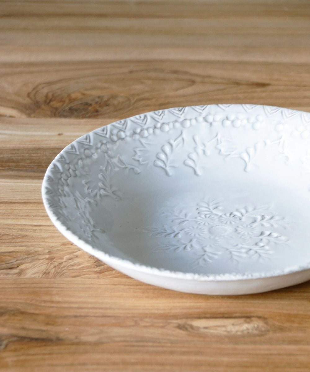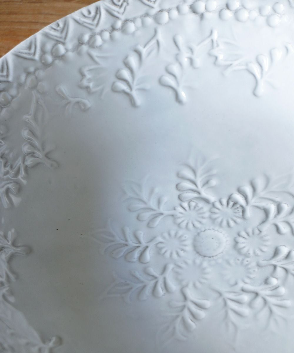クラッシックをベースにデコラな装飾、綺麗な白の塗り、鉄色の素材… 洗練された存在感です。薄くて軽く、丈夫なので日常使いにも最適です。食洗機にも対応しています。