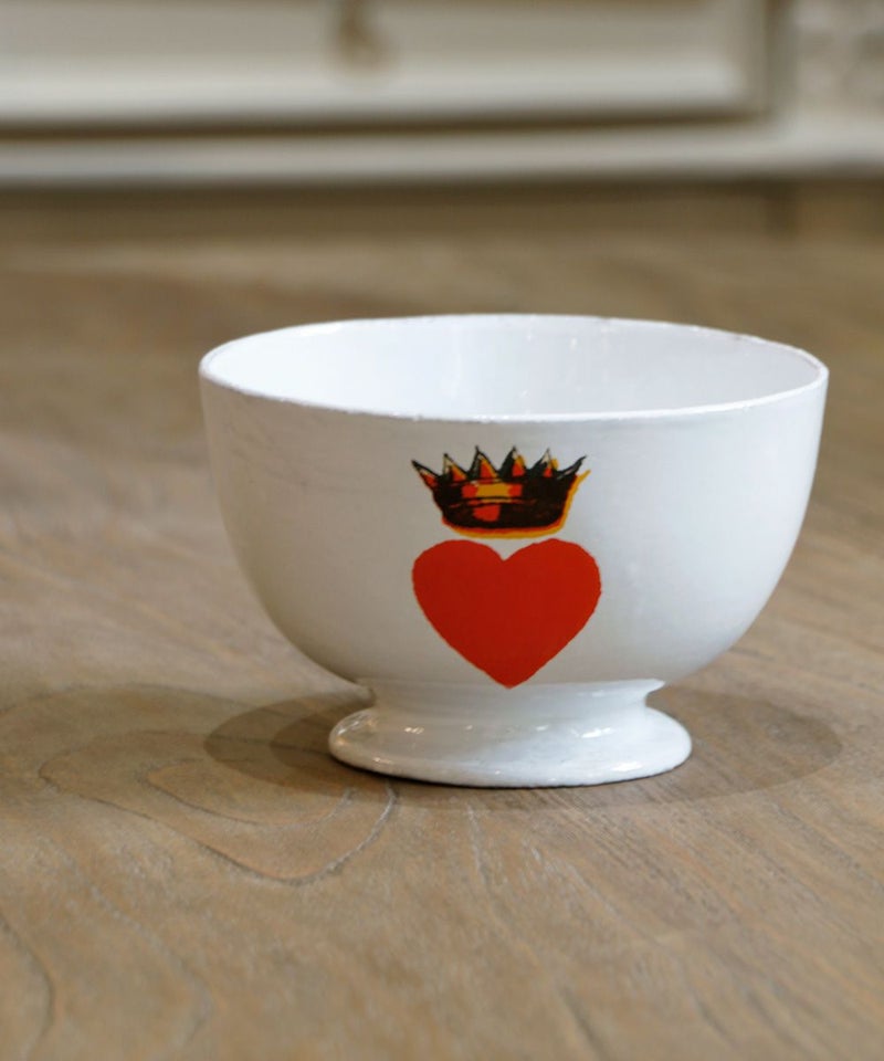たっぷりと大きなカフェオレボウルにエレガントなハートのクイーンのプリント。