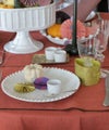 お昼のデザート時には、ジャムやナッツ、クリームなどのトッピング入れに。