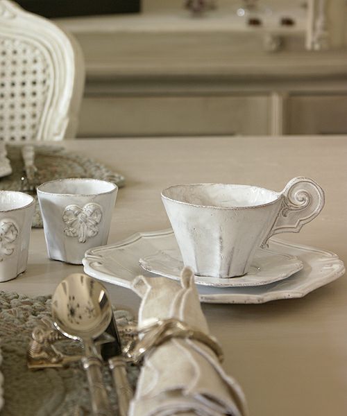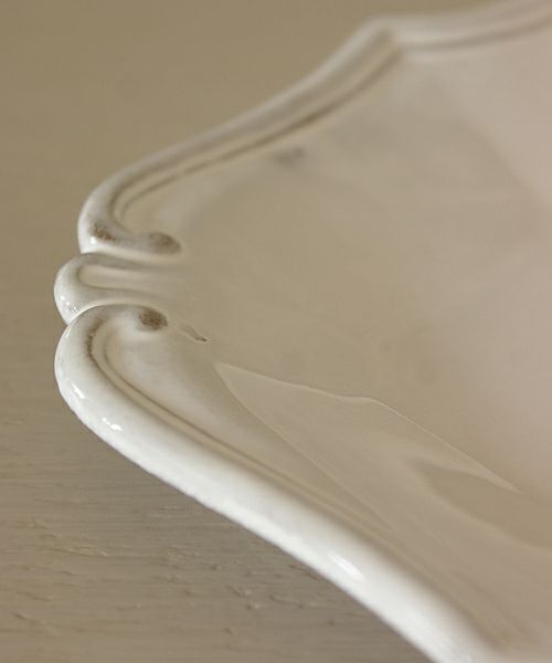 クラッシックをベースにデコラな装飾、綺麗な白の塗り、鉄色の素材… 洗練された存在感です。薄くて軽く、丈夫なので日常使いにも最適です。食洗機にも対応しています。