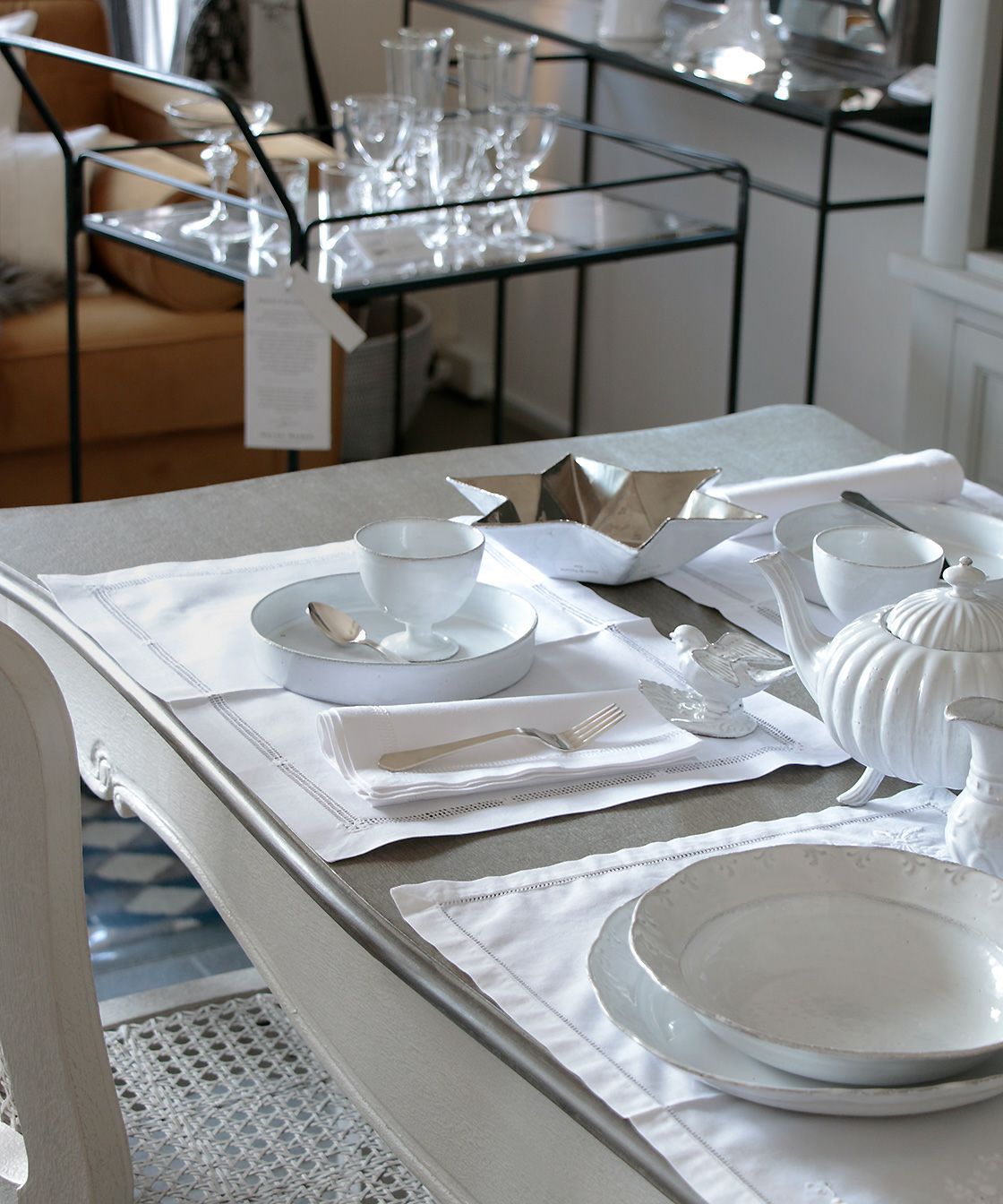 クラッシックをベースにデコラな装飾、綺麗な白の塗り、鉄色の素材… 洗練された存在感です。薄くて軽く、丈夫なので日常使いにも最適です。食洗機にも対応しています。