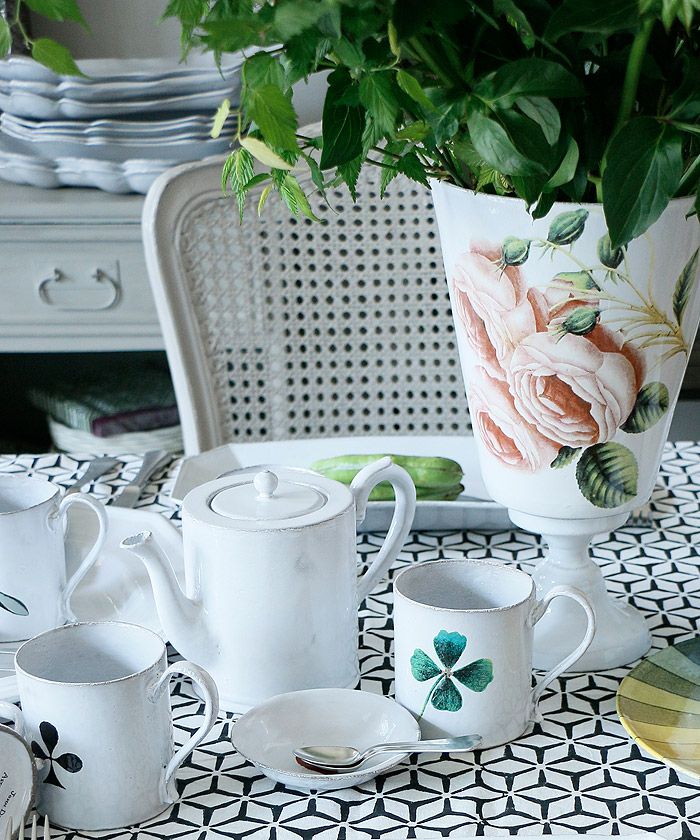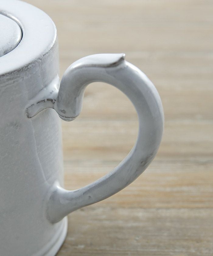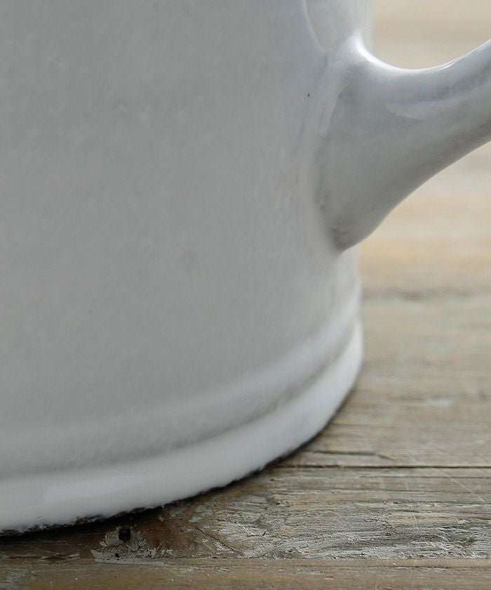 クラッシックをベースにデコラな装飾、綺麗な白の塗り、鉄色の素材… 洗練された存在感です。薄くて軽く、丈夫なので日常使いにも最適です。食洗機にも対応しています。