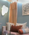 異素材やカラフルなクッションと組み合せても◎