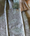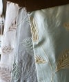 リーフ柄は大きく羽状脈のシルエットで刺繍が施され、
